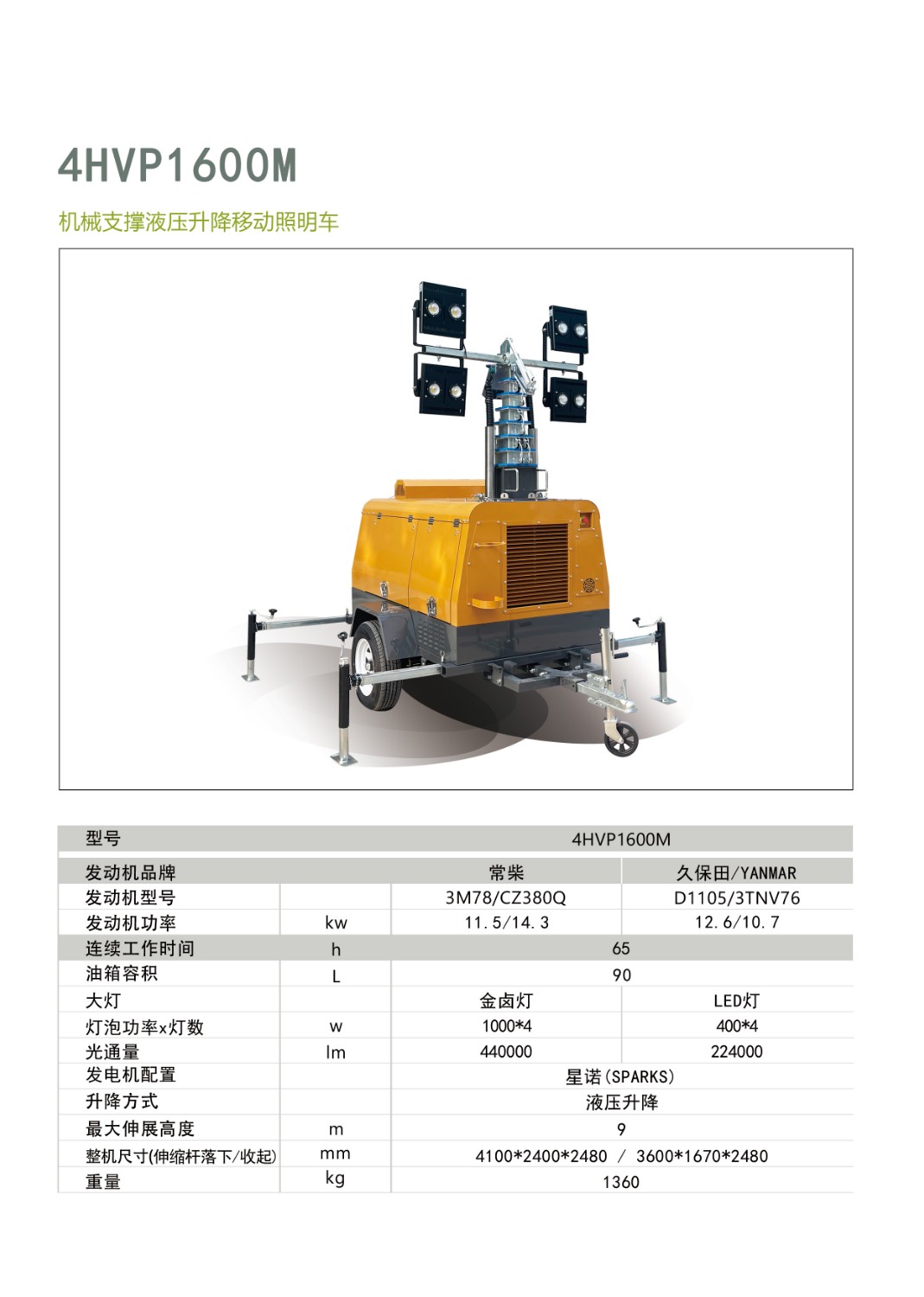 山東思拓瑞克工程機械有限公司-移動照明車-機械支撐液壓升降照明車4HVP1600M